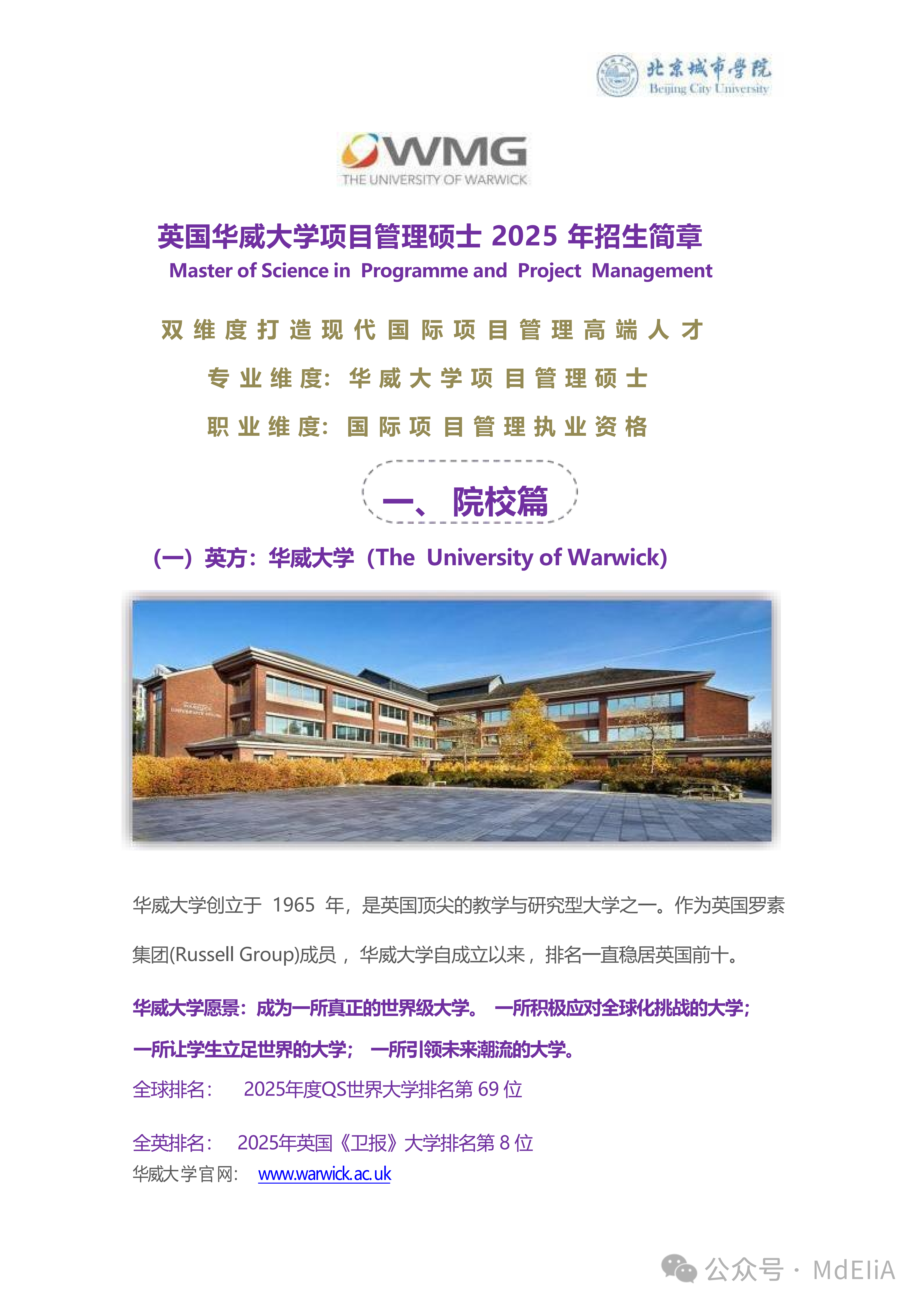 ✅排名:2025年度QS世界大学排名第69位 ✅课程:8门核心课程均由华威大学资深教授英语授课+5门中方课程 ✅招生要求:全日制本科双证+英语较好 ✅自主招生,材料申请+英语面试,华威审核录取,在职面授