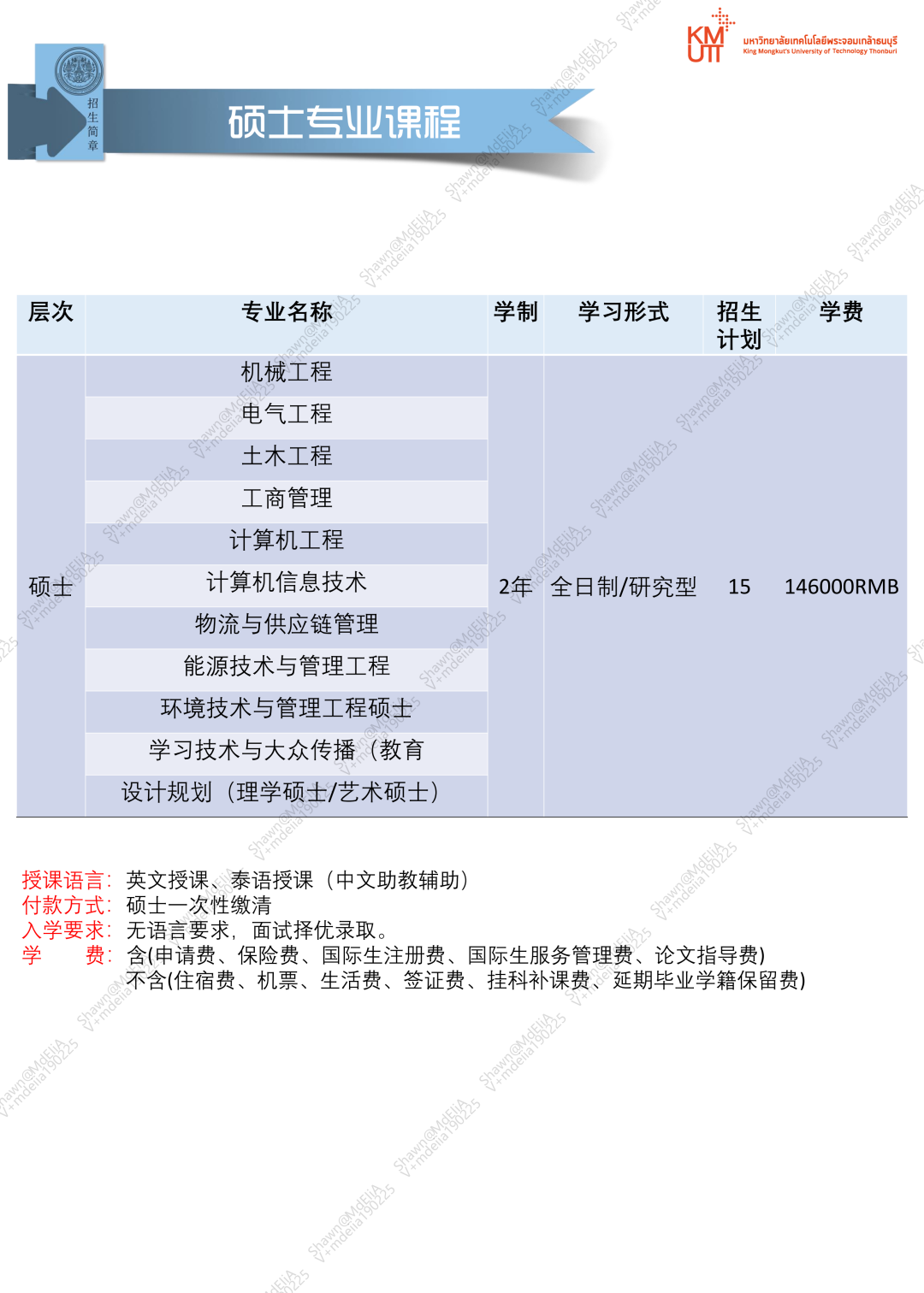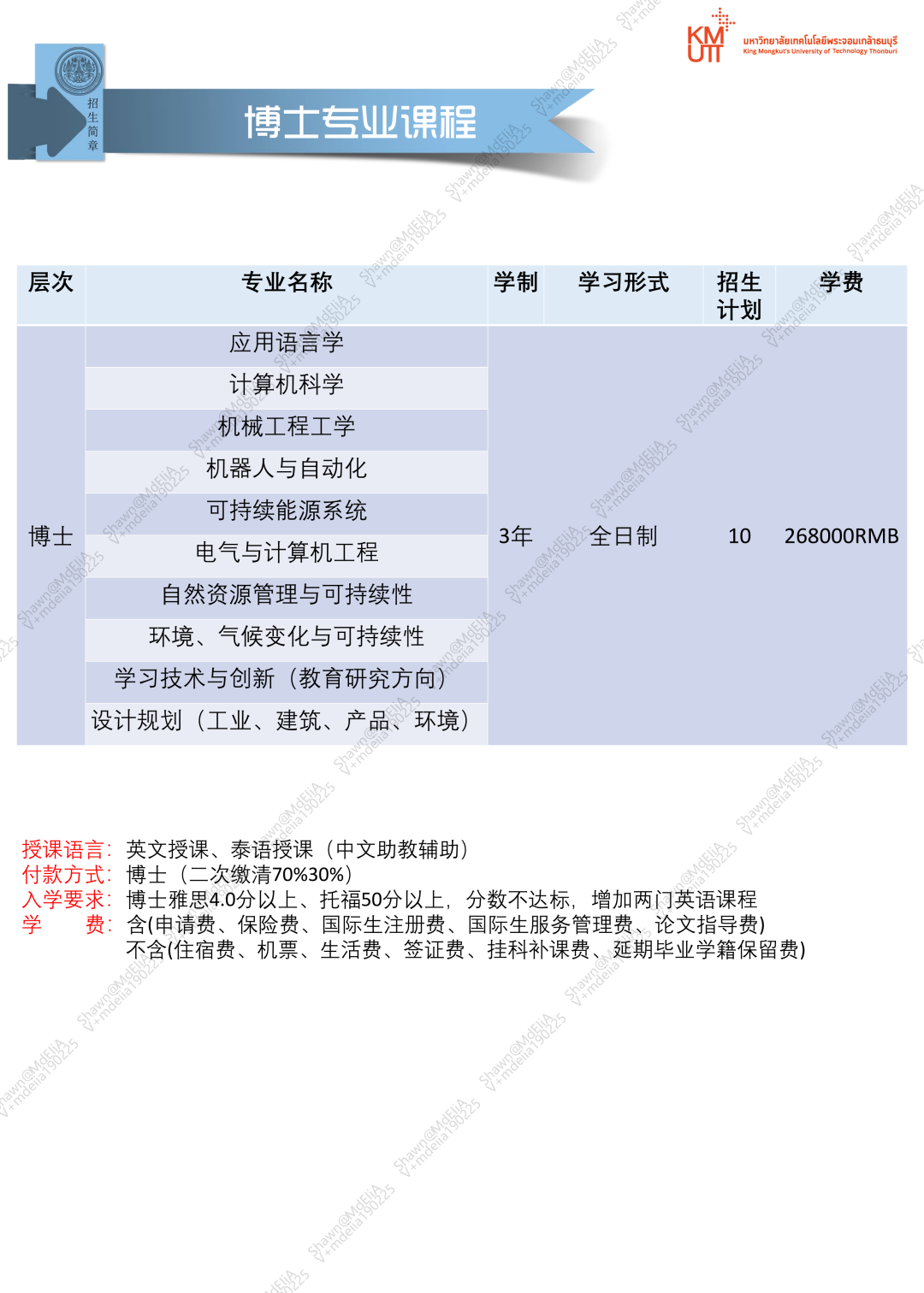 泰国国王科技大学硕博课程