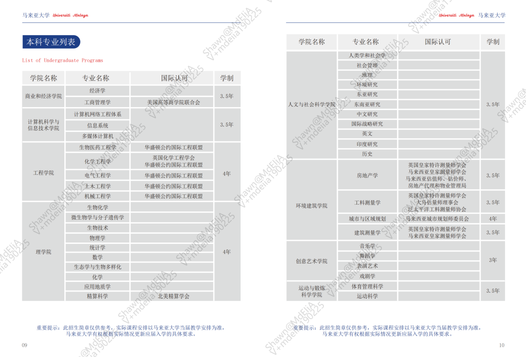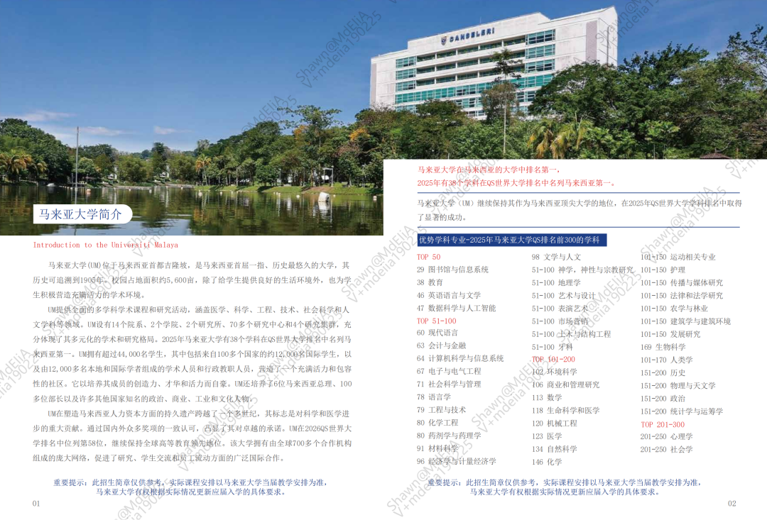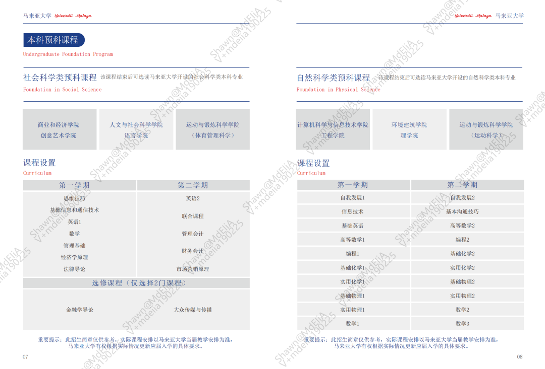 马来亚大学本科预科课程(0119更新)