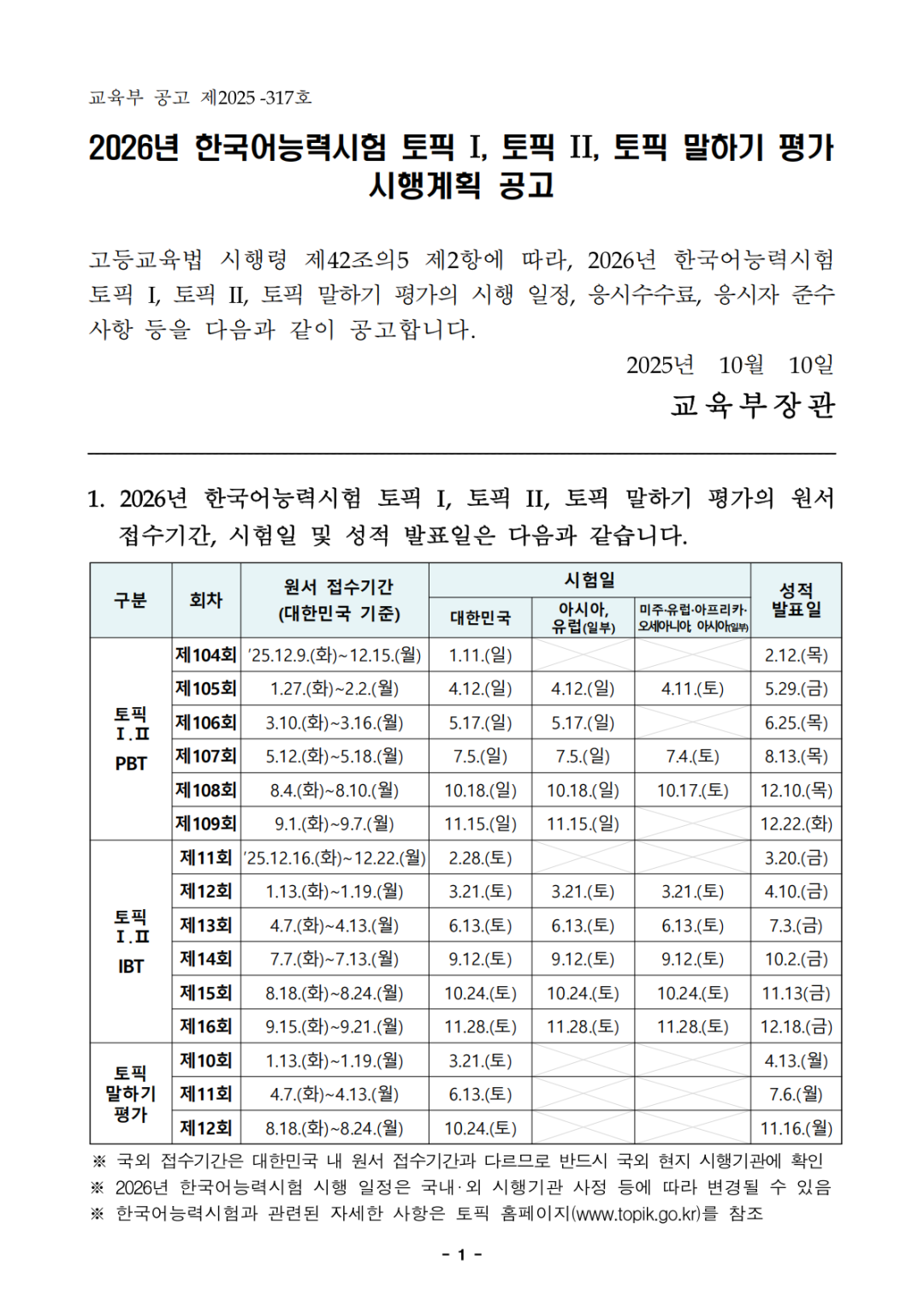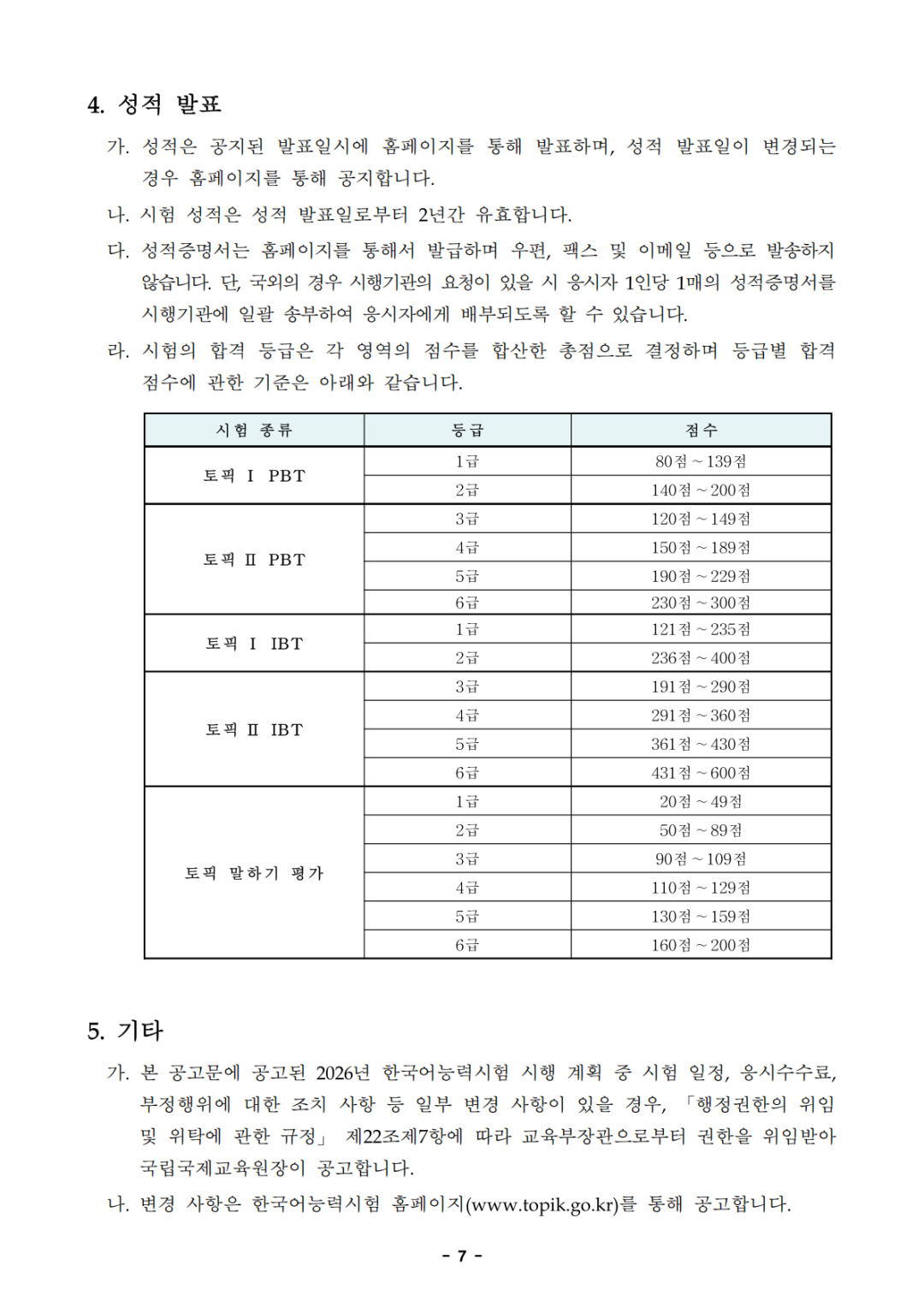 26年TOPIK考试详情