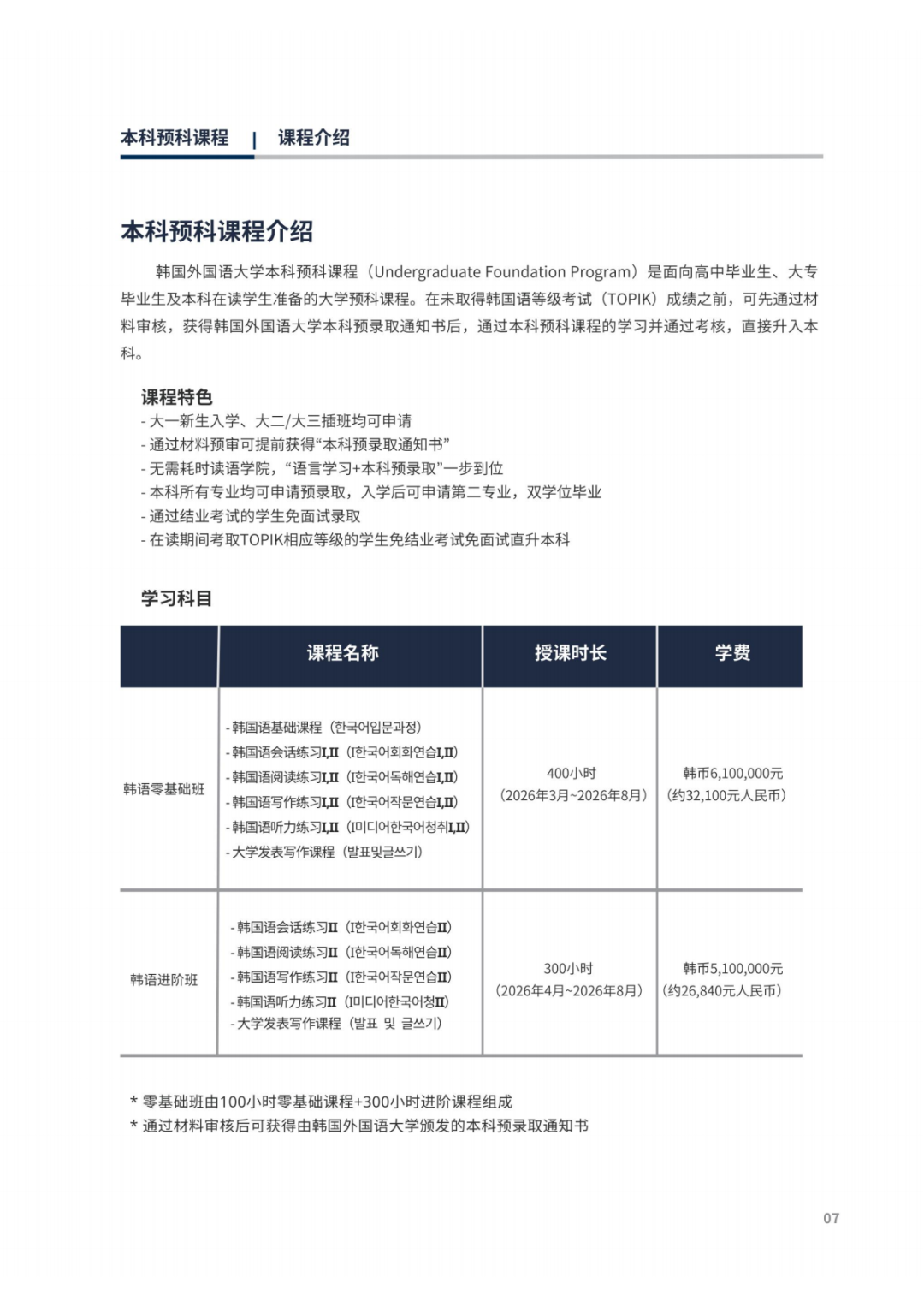 韩国外国语大学预科课程(3月开课,对接26年秋季入学)