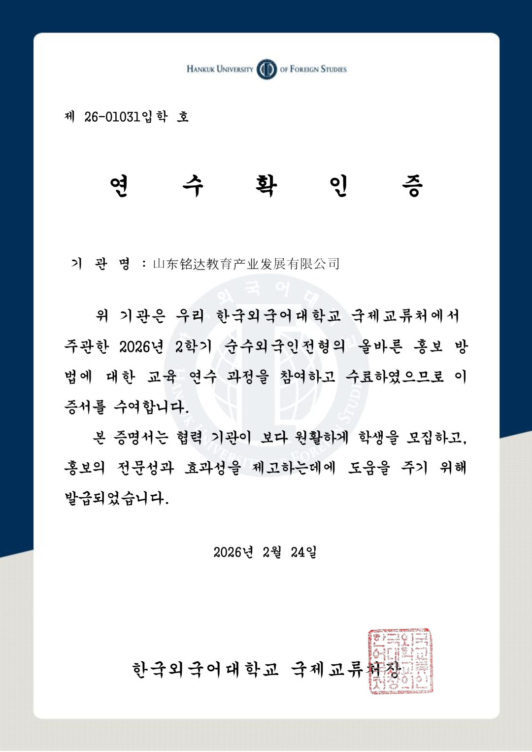 韩国外国语大学新招生政策
