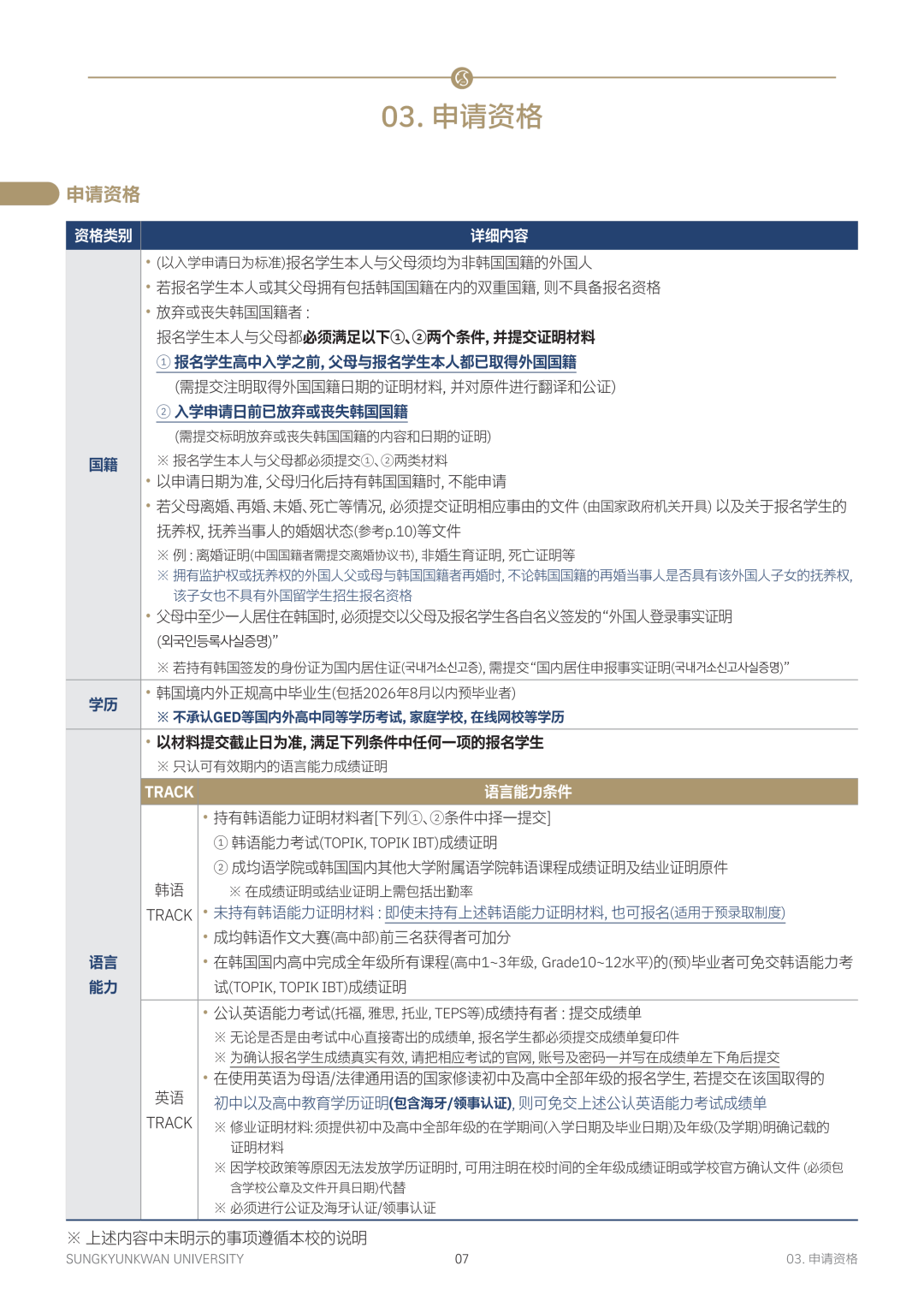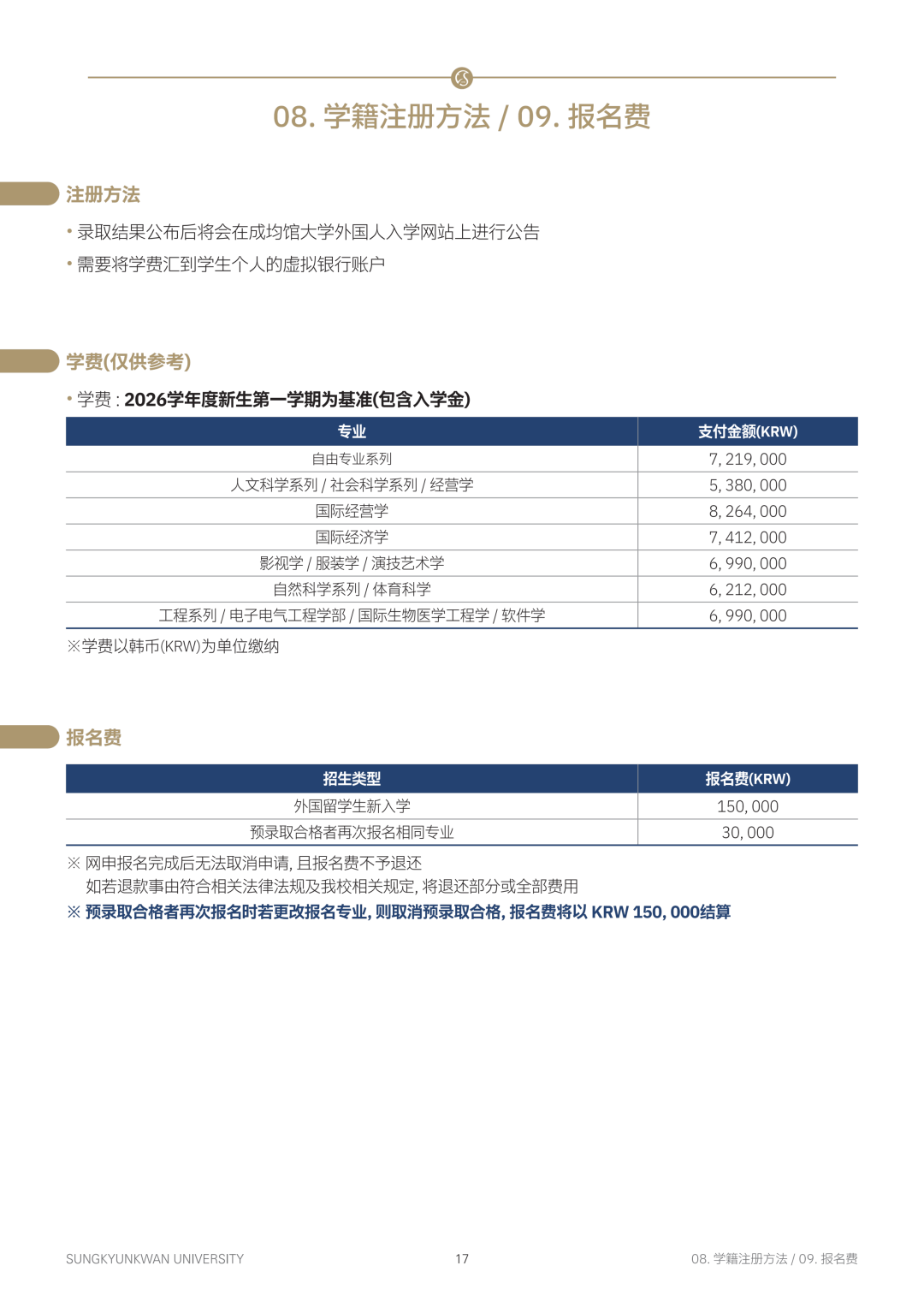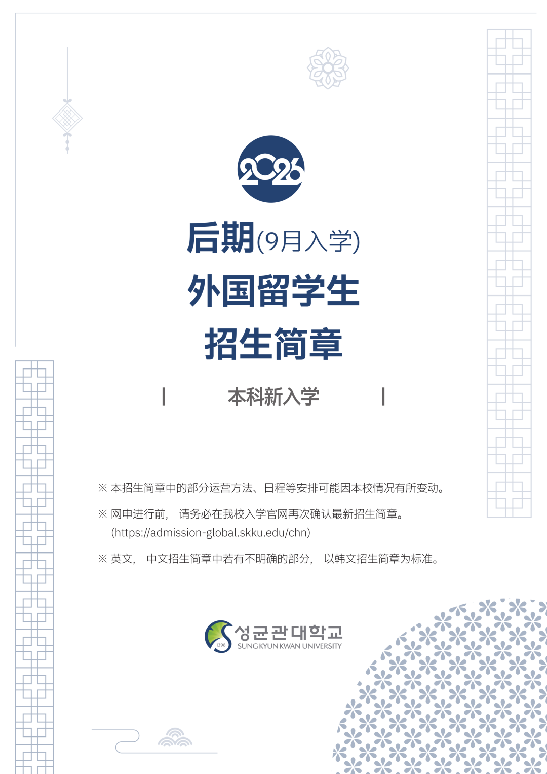韩国成均馆大学本科招生手册(26年9月)